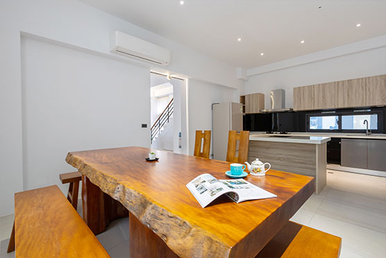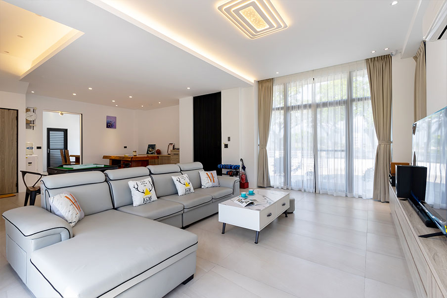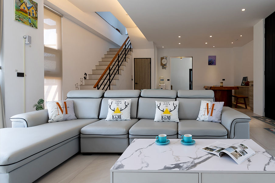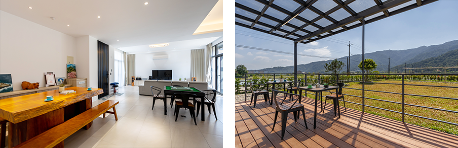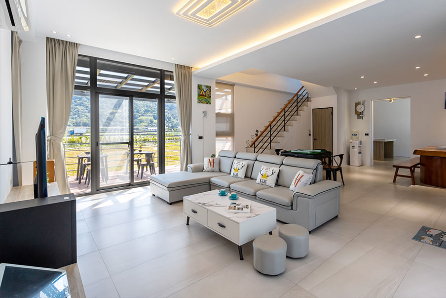 推開大門,映入眼簾的是寬敞明亮的空間,簡潔線條與木質家具交織出溫潤氛圍。夜晚,親友們圍坐在這裡,笑聲在空間裡迴盪,這裡不只是住宿,更是共享時光的舞台。